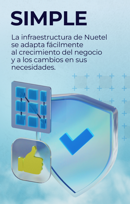 La infraestructura de Nuetel se adapta fácilmente al crecimiento del negocio y a los cambios en sus necesidades, sin requerir una reestructuración completa.